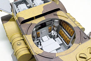 「完成後は絶対見えない部分も細かく再現され、紙模型作りを満喫できました。 見えないのは、ちょっと残念ですが... 砲弾の弾頭部は1.5mm、薬莢部は2mmのプラ丸棒を加工して作りました。 砲弾も型紙にあり、薄手の紙にコピーするなどして挑戦してみましたが、 先端部の円錐形が難しく、84個も作るなど「とても無理」と早々に諦めました。 解説図と型紙で、部品番号の不一致がかなり多かったので注意深く進めました。 フレーム部品が1点足りませんでしたが、簡単に作れるものだったのでご愛嬌。 型紙を何度も探しましたが見つからず、ネットで見つけた作例を調べた結果、 組み立てられた部品番号が手書きでしたので、「自作」と判断しました。 また、形が微妙に異なり組み合わせがうまくできない部品もありましたが、 色合いが多少違っても問題ない箇所だったので、それらも自作で対応しました。 紙模型を始めた頃は、型紙に縛られているような感じでしたが、最近は自由に 考えられるようになり、楽しみながら「自作」できるようになりました。」
